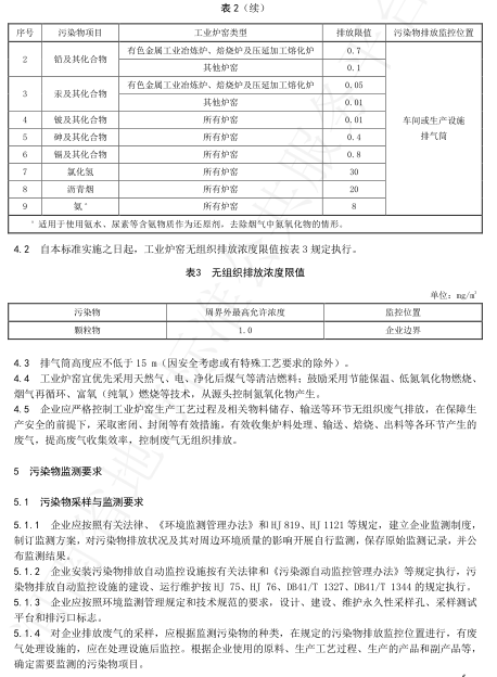 顆粒物排放極限:耐火材料工業干燥及燒成窯,剛玉類工業熔煉爐、熔化爐、鋁石窯:10mg/m3。