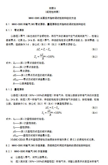 9.3.2.2氧含量、流速、煙溫和濕度技術(shù)指標(biāo)、操作步驟和計算公式均按照本標(biāo)準(zhǔn)附錄B相關(guān)要求執(zhí)行。