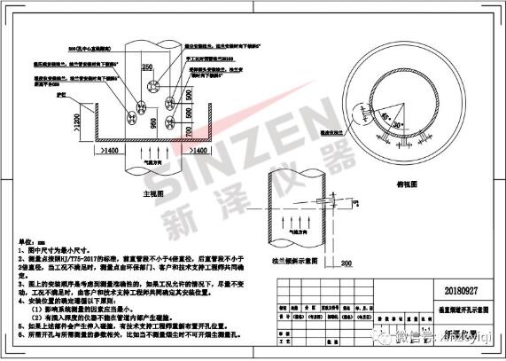 CEMS煙氣在線監(jiān)測(cè)設(shè)備的垂直煙囪開孔示意圖